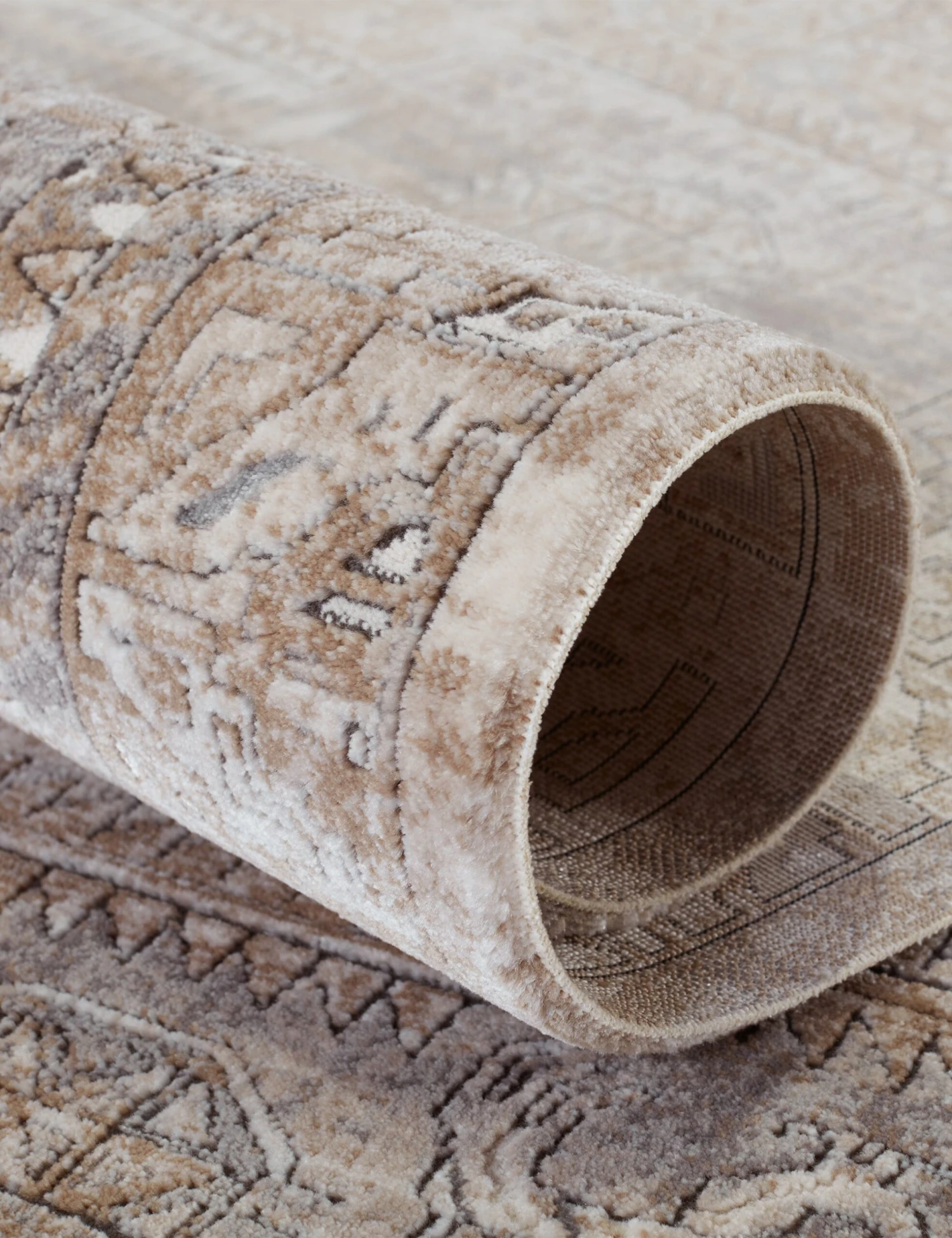 An ornate motif and balanced neutral palette bring easy transitional appeal to this floor rug. Inspired by vintage Turkish designs, a modern construction and low pile make this rug perfect for high-traffic areas and pet-friendly spaces.