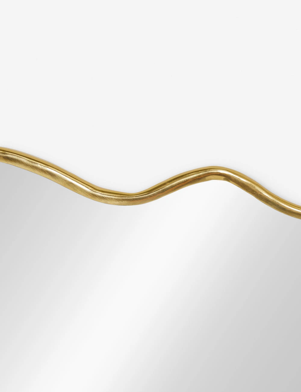 Clean design and a wavy silhouette give this narrow brass frame a chic appeal. With its generous dimensions, this gold mirror is perfect for adding depth and polish to a mantel or entryway table. This piece is from our exclusive Sarah Sherman Samuel collaboration and features all the trademarks of her warm, edited style.