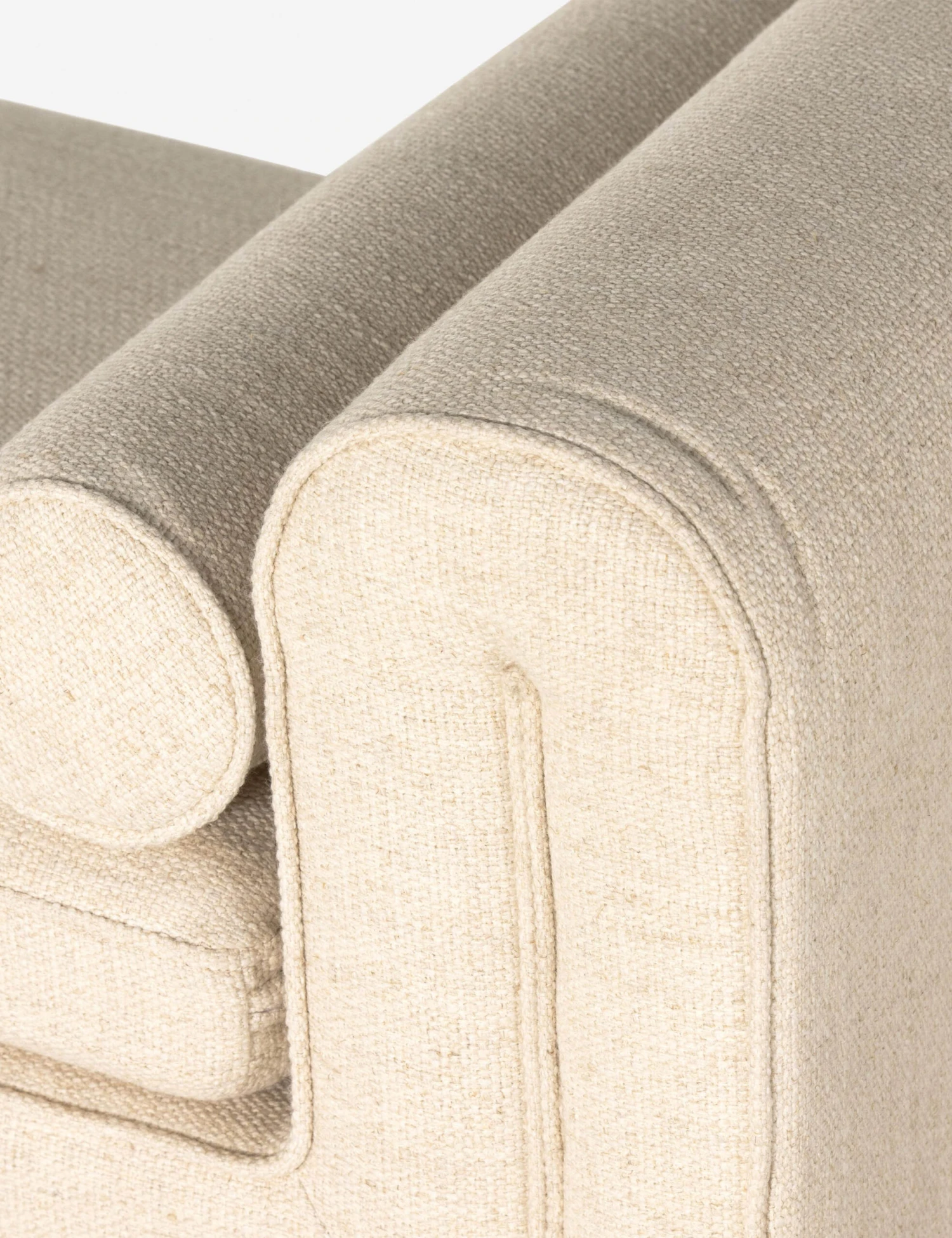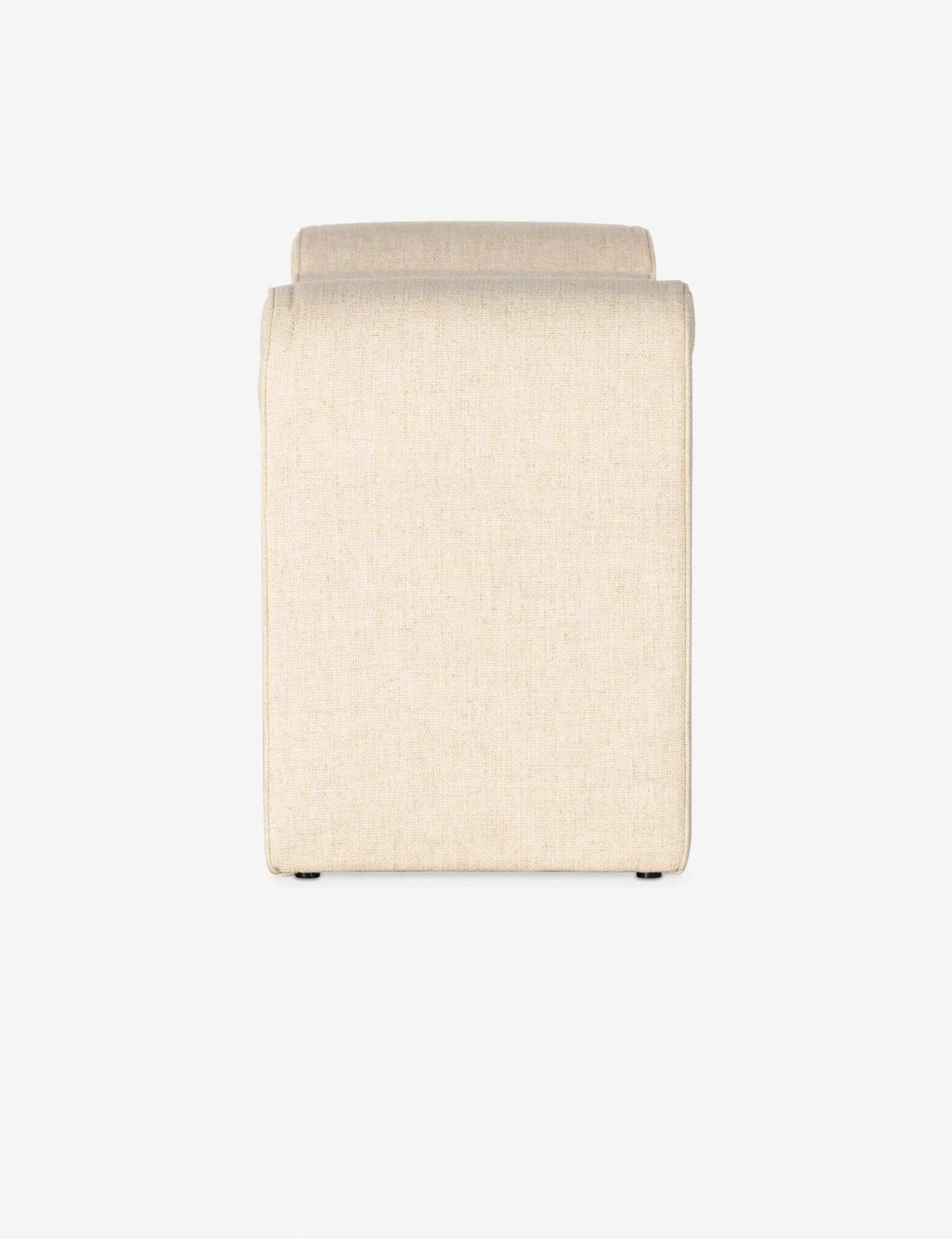 Set your space for streamlined sophistication with this stylish accent bench. Soft, upholstered lines gently curve and fold into a modern bench seat, offering a trend-forward look with timeless appeal. The clean and balanced profile blends linear elements with rounded edges and cylinder cushions for a plush yet airy design.