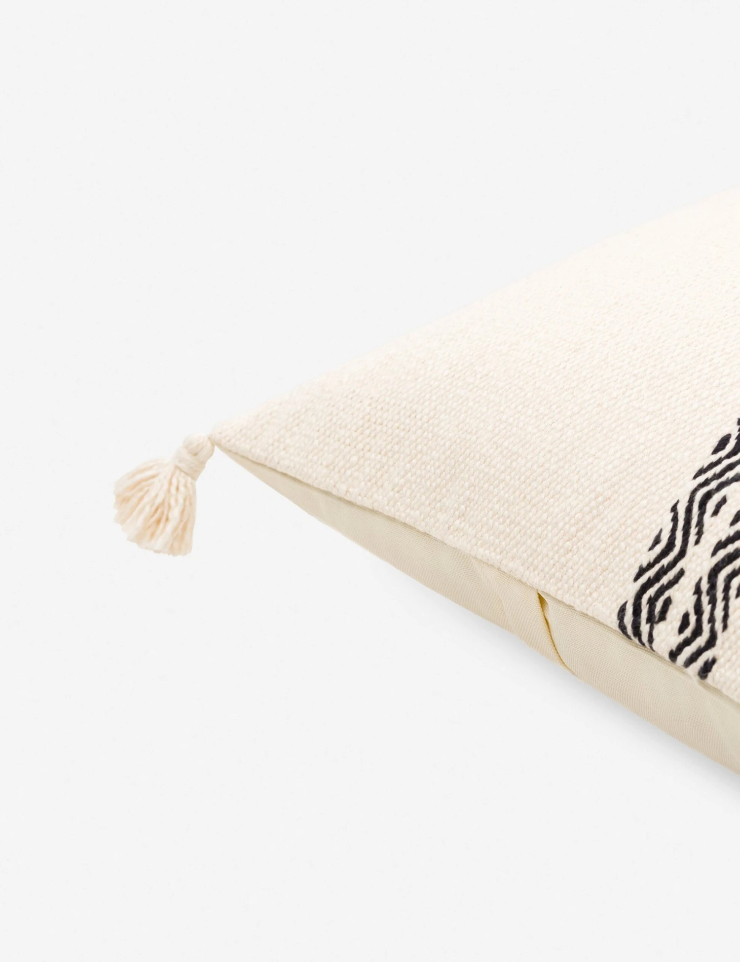 Introduce a woven textural layer to your sofa with this durable cotton lumbar throw pillow featuring tasseled corners. Two dynamic stripes interrupt a neutral-toned field on these casual throw pillows, offering graphic minimalism with plenty of visual appeal. Style this pillow as a cozy touch for a collected space.