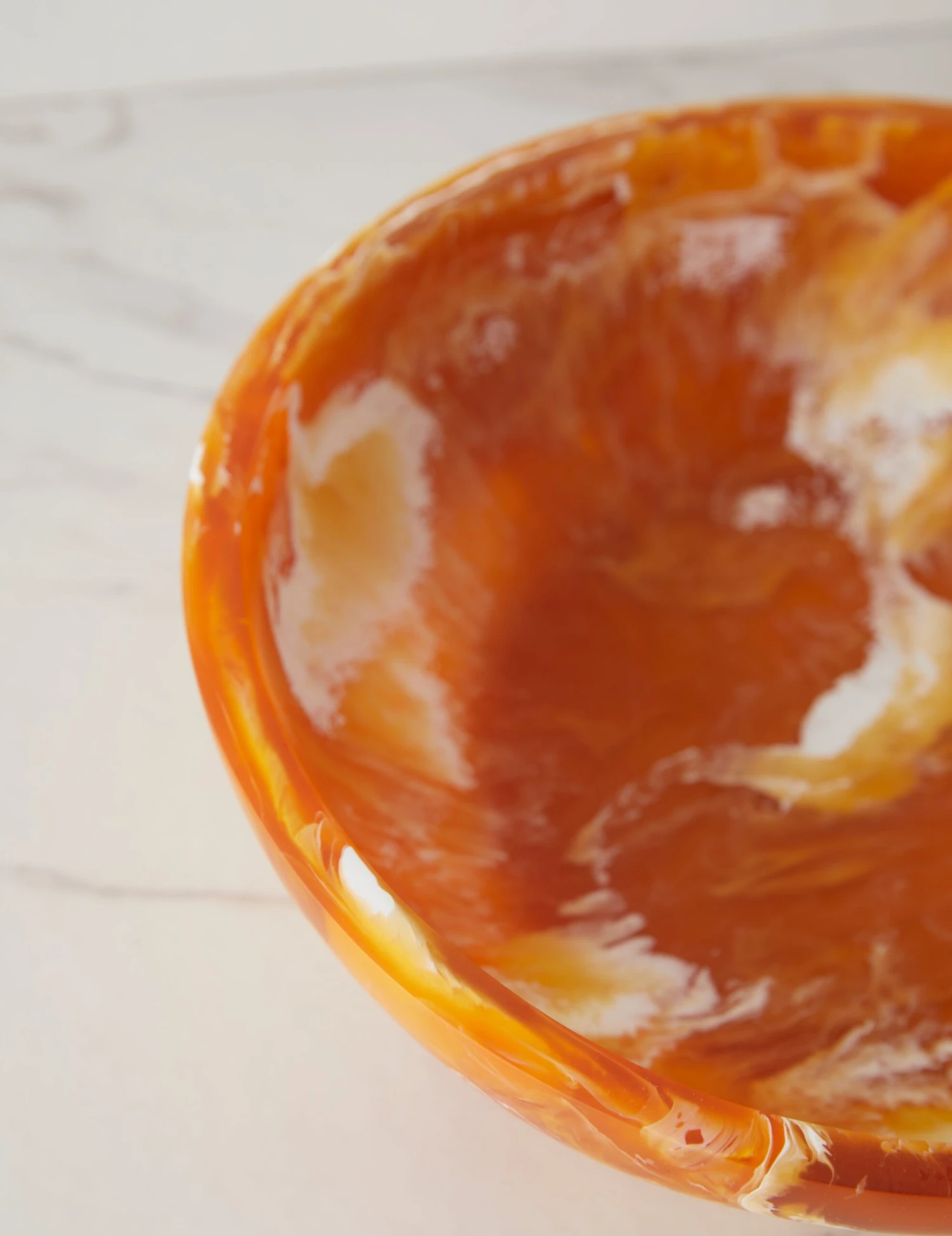 Atlawa makes beautifully formed resin creations in Mexico. This kitchen collection features naturally inspired colors that blend and swirl in a marbleized pattern. This resin salad bowl brings a stylish edge to garden fresh sides.