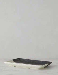 Anchor a chic centerpiece or create a stylish catchall on your dresser or entryway table with this stoneware platter. The two-tone finish offers an eye-catching impact with an understated touch.