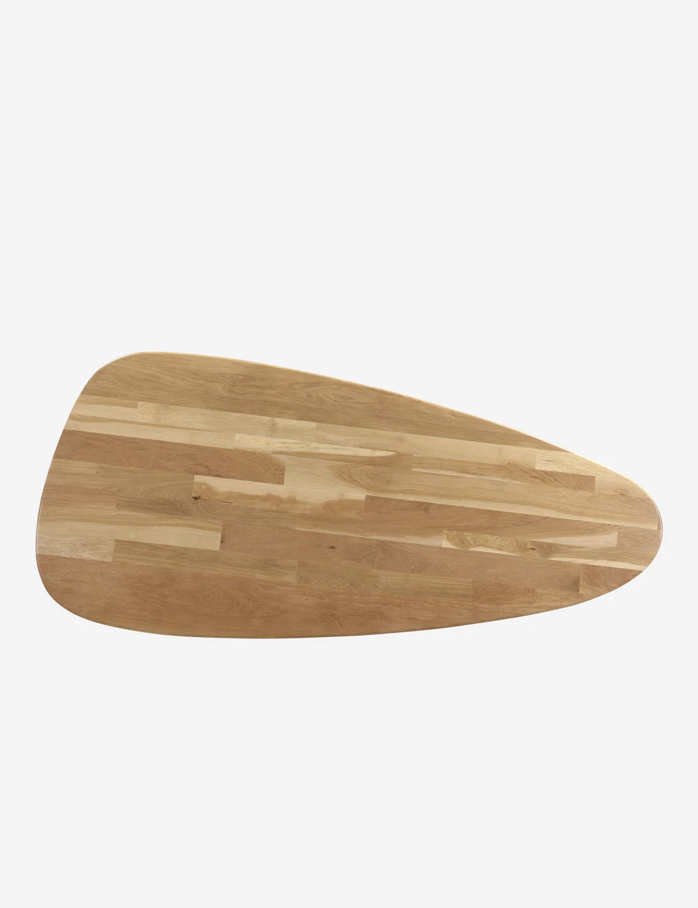 Quality craftsmanship and an eye-catching curved silhouette lends this light wood dining table plenty of modern appeal. The dramatic lines of this dinner table’s solid white oak construction offer your dining room a grounding focal point with a sculptural edge.