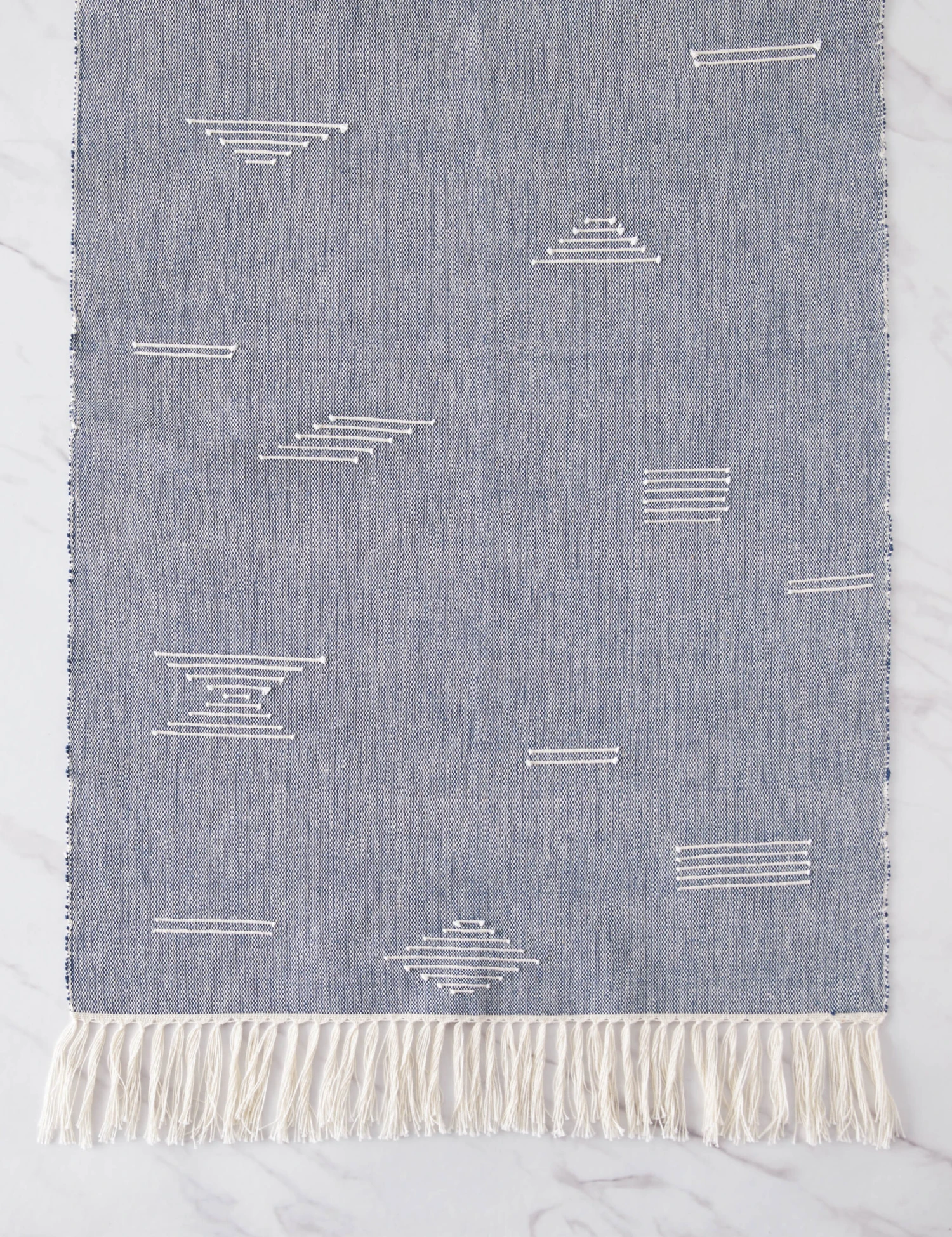 Elevate your tablescape with an artisanal foundation. The Shapes runner from Minna features a chic, versatile design handwoven by a family-run cooperative in Mitla, Mexico—a grounding touch for tabletop decor from your dining room to your dresser.