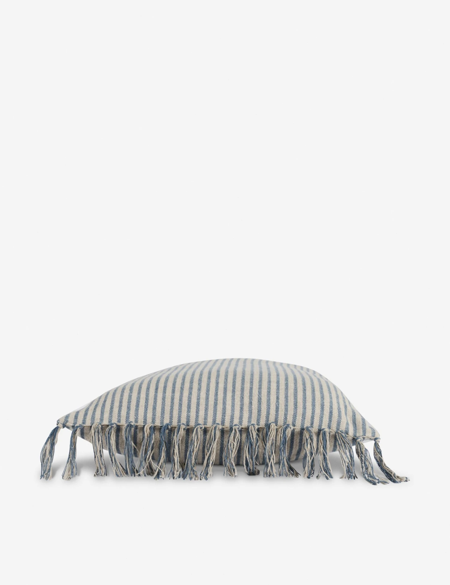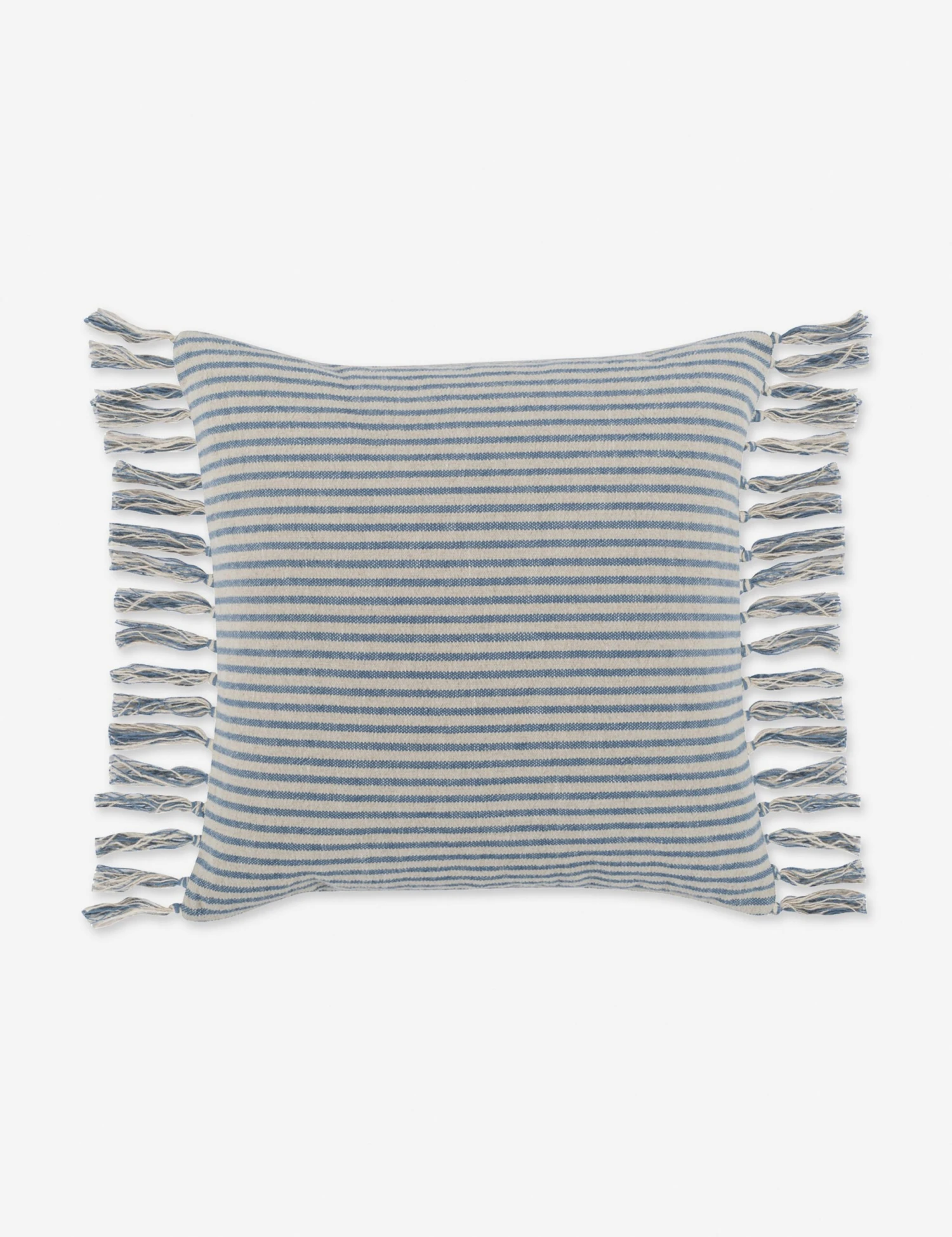 A classic blue-and-white striped design and knotted tassels all along the side of this accent pillow lend it a coastal, laid-back feel. The striped pattern strikingly stands out, but it is the soft feather blend insert which will immediately make this throw pillow one of your favorite pieces in your lounge.