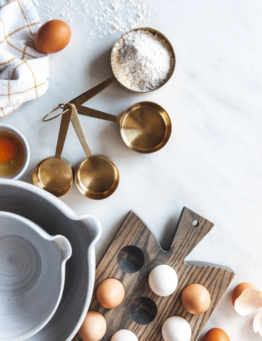 Vermont-based studio Farmhouse Pottery creates handcrafted accents and table essentials with rustic charm. Combining a brushed finish with elegant lettering, these stainless steel measuring cups add a touch of sophistication to cooking and baking projects. The Stowe collection features clean and timeless designs made to bring you heirloom-quality utensils and cutlery.