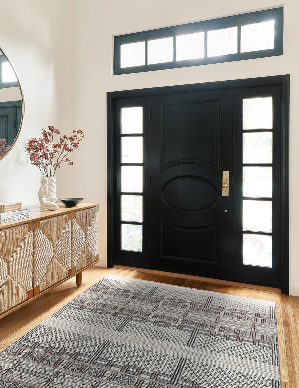 Eye-catching and dynamic, this handwoven area rug deftly mixes different patterns in a black-and-white palette to create a stylish tapestry for your home. Weather-resistant and durable, this area rug is a great fit for outdoor living spaces, as well as high traffic areas like entryways and living rooms.