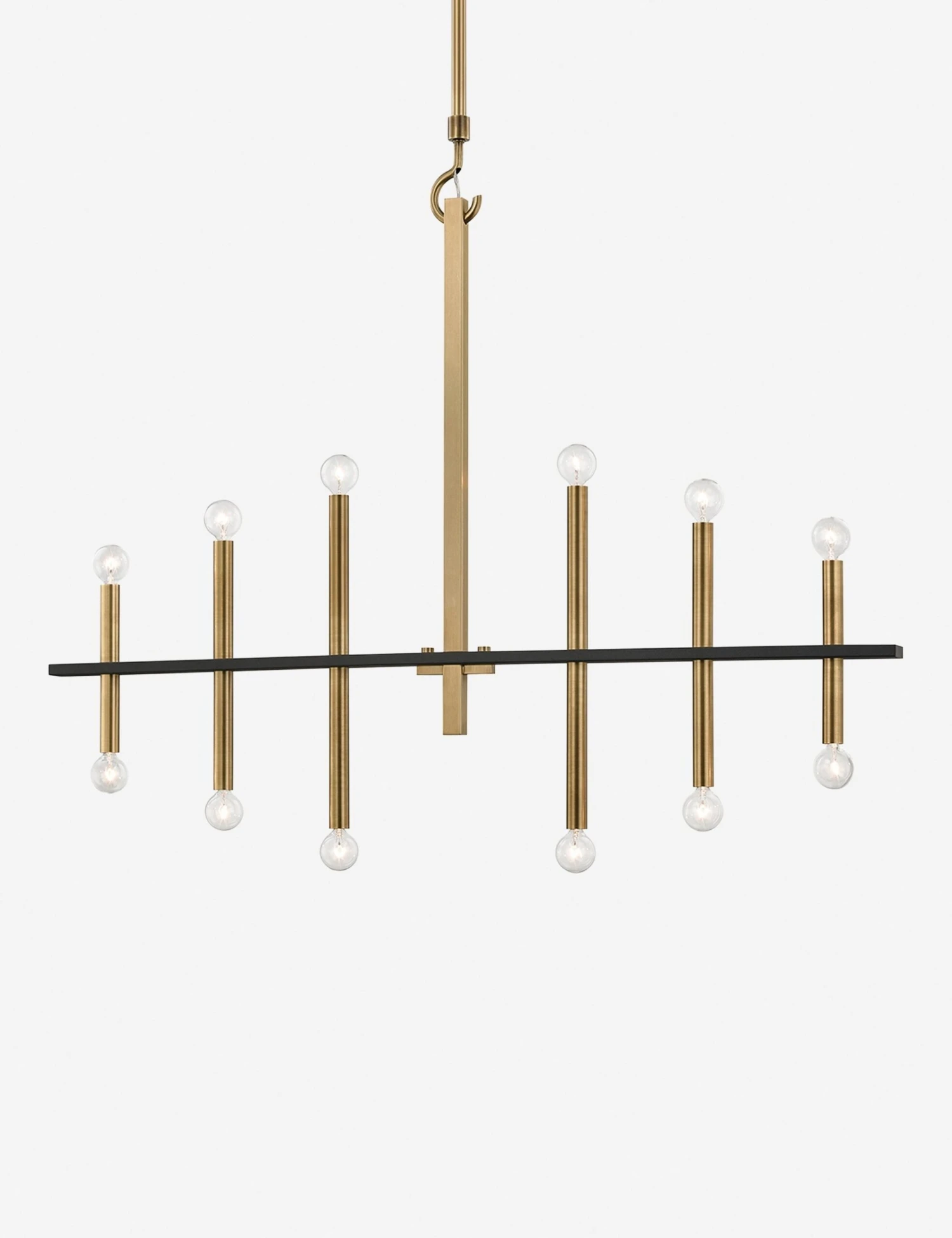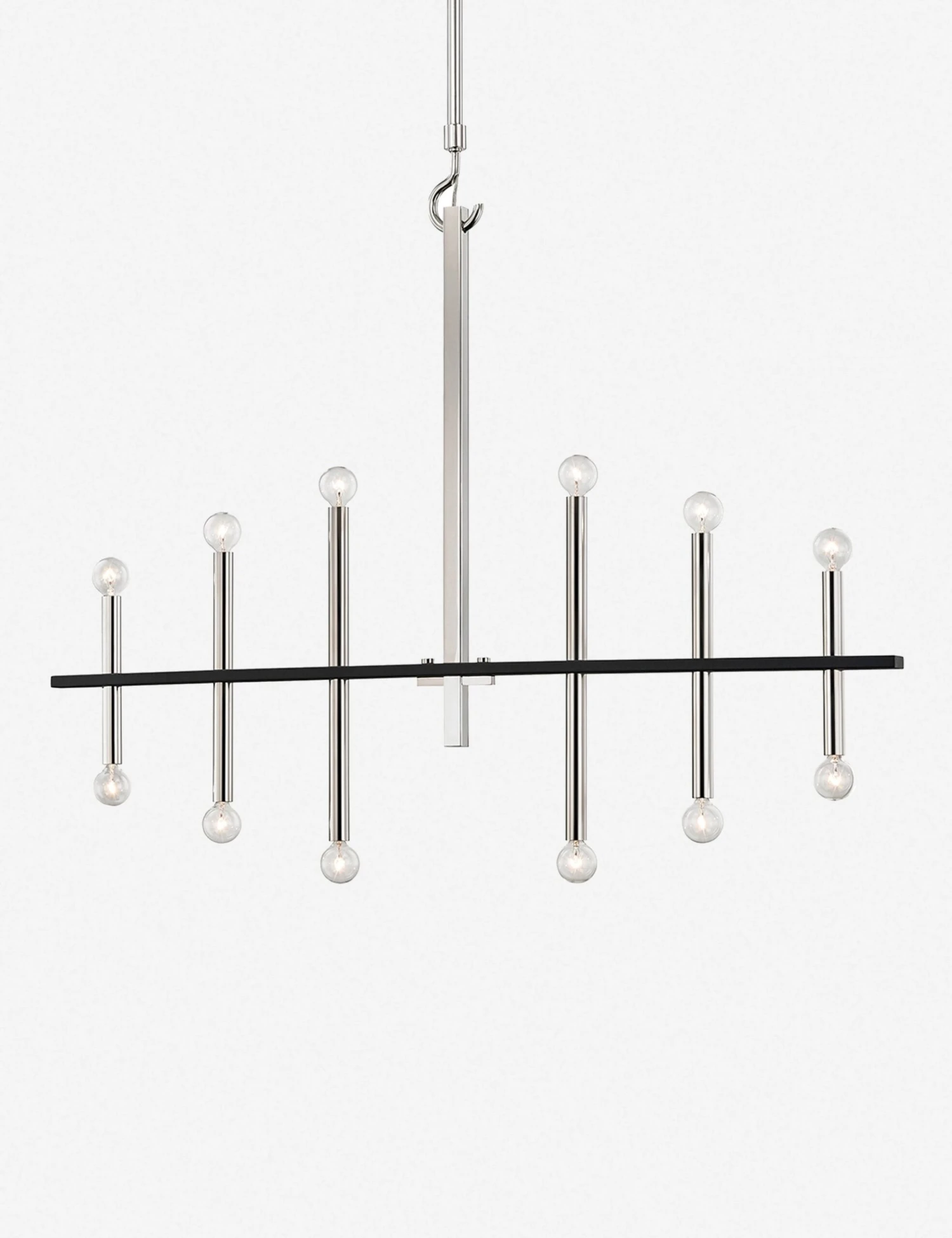 A clean-lined arrangement of twelve bare bulbs strikes a tone of refined minimalism and elegant symmetry in this ceiling fixture. Bathe your living room or dining room with a ceiling light that will reflect the tailored lines of an airy, modern space.