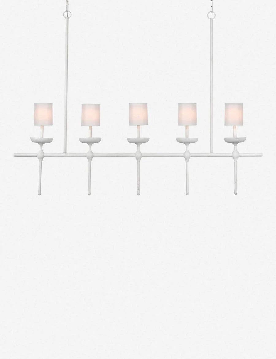 Traditional notes come together in a modern look in this well-balanced chandelier design. Styled above a dining table or in as part of a lighting scheme in a transitional decor, the matte plaster finish of this chandelier will offer a timeless element with artisanal charm.