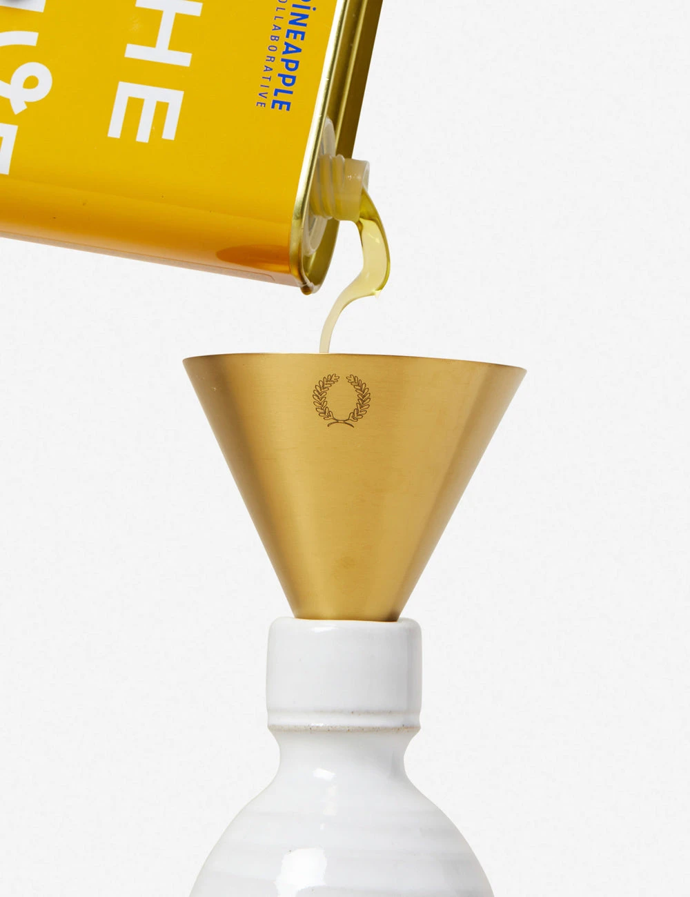 Vermont-based studio Farmhouse Pottery creates handcrafted accents and table essentials with rustic charm. A funnel is a versatile essential for a seamless home kitchen. From oils and soap to spices and grains, this chic funnel offers the perfect blend of function and style, letting you refill and transfer staples with effortless appeal.