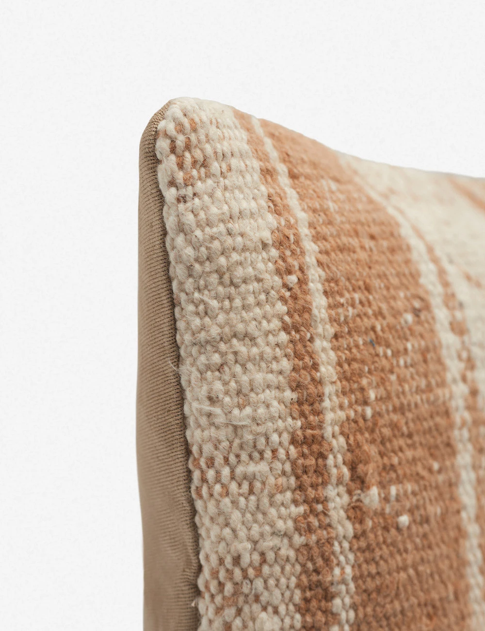 A vintage decorative pillow instantly adds warmth, stunning detail, and natural striations in color. Handcrafted from vintage wool kilims, these Turkish throw pillows are incredible layering pieces. Richly textured and full of pattern, this lumbar cushion feels like a discovery from far-flung travels.