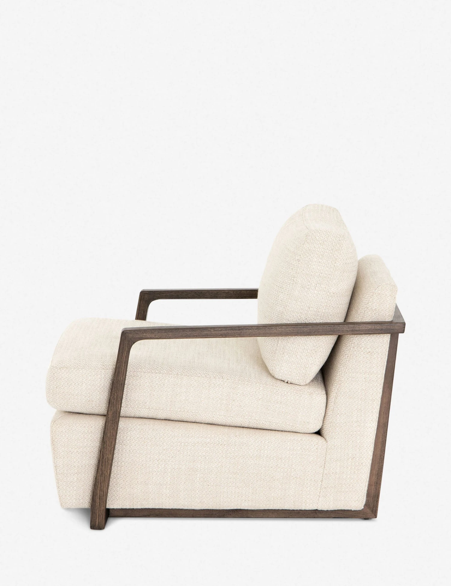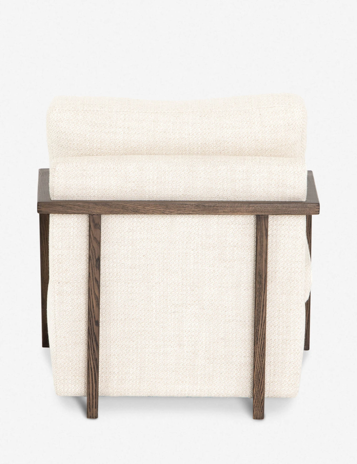 Set for a gently reclined lounge appeal, this accent chair features an oak frame with plush and practical performance-upholstered seating. Style this chair with a pharmacy lamp or sculptural side table for a casually refined reading nook feel.