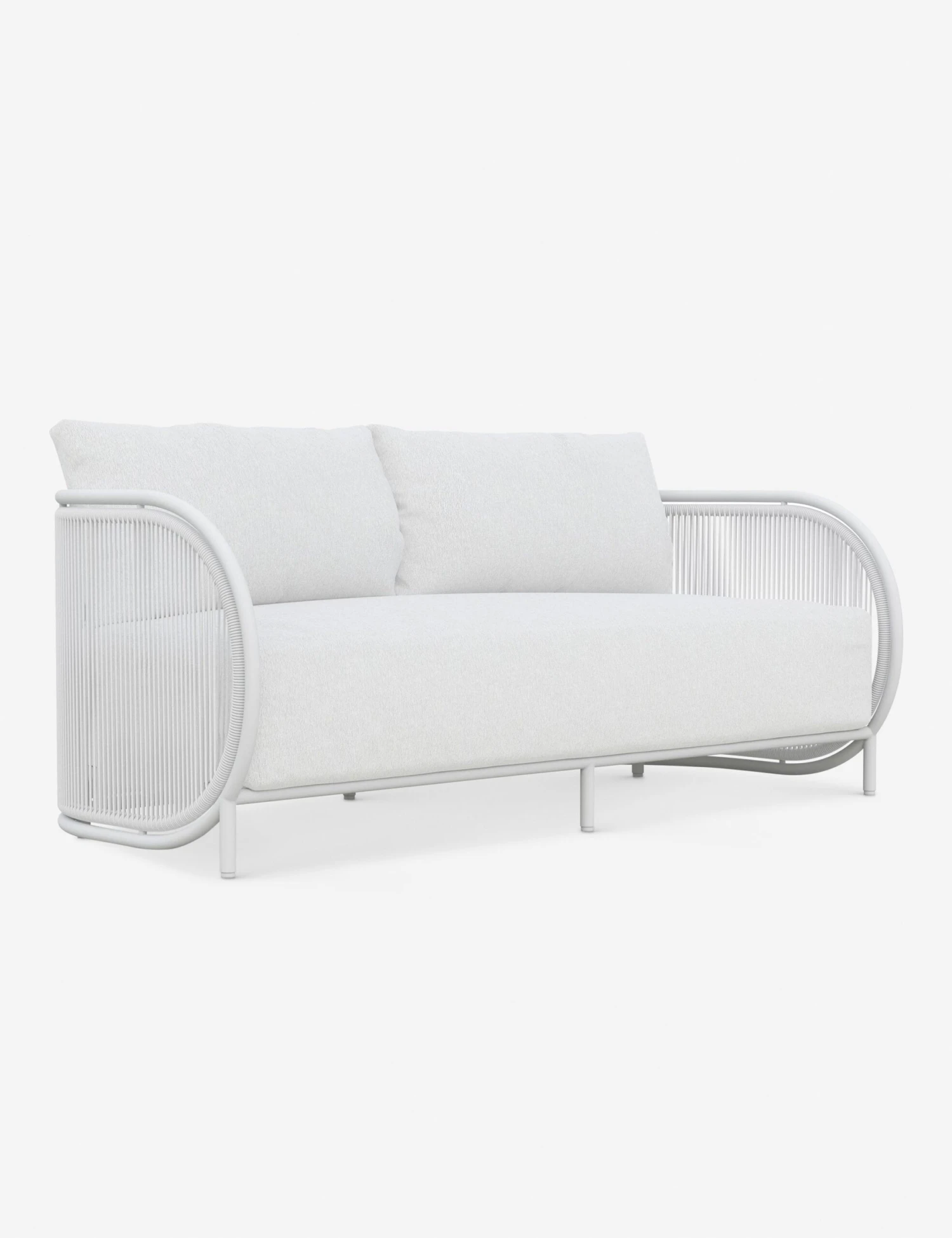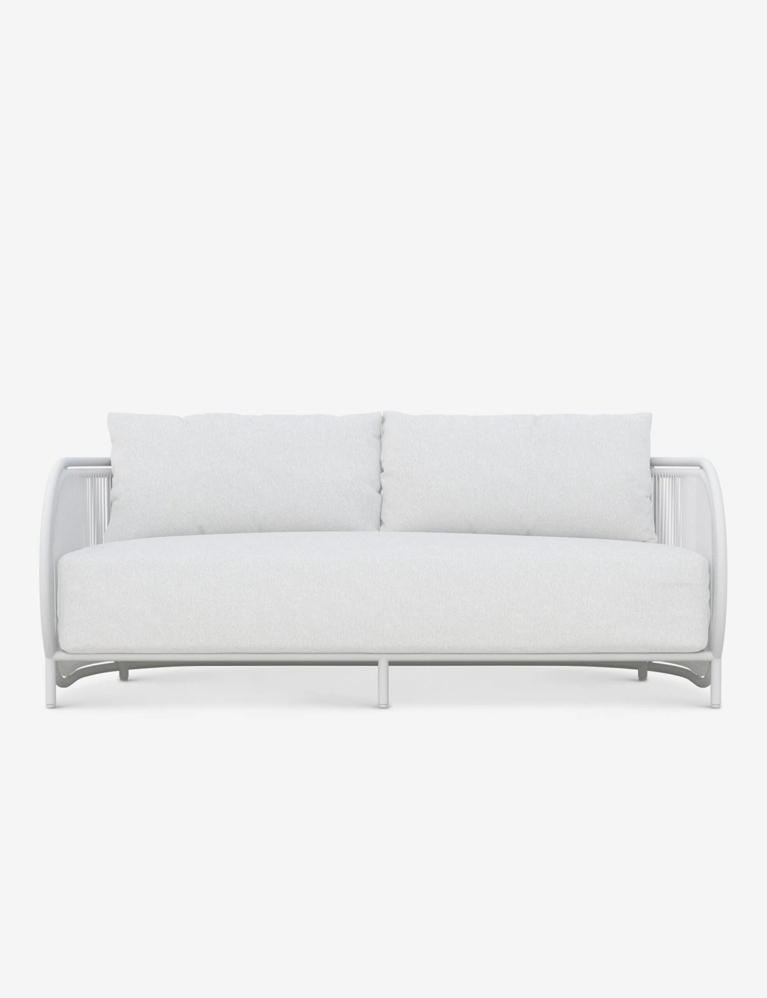Curvilinear forms bring a breezy sophistication to the Yemaya indoor/outdoor sofa. The aluminum frame features a linear weave for added texture with plush performance cushions set for easy-care and lasting elegance. Inspire sculptural appeal in a sunroom or terrace lounge with this irresistibly modern sofa.