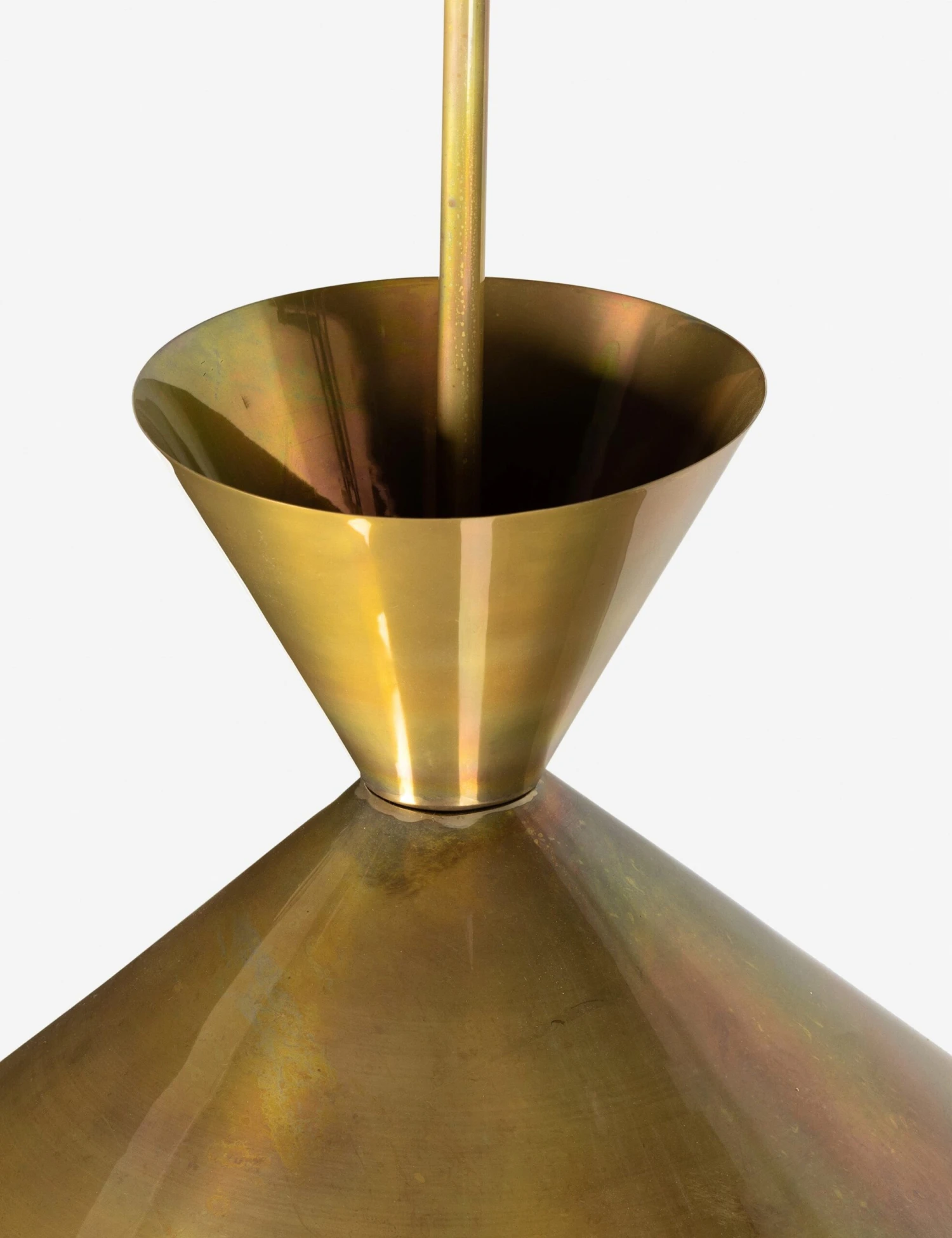 This chic pendant light brings a touch of Art Deco style to any living space. The hourglass design cuts an eye-catching silhouette that stuns in brass—with a unique finish created by holding the material over an open flame, adding to the warmth of its natural luster. We love this pendant as a smaller-scale statement light for splendor overhead.